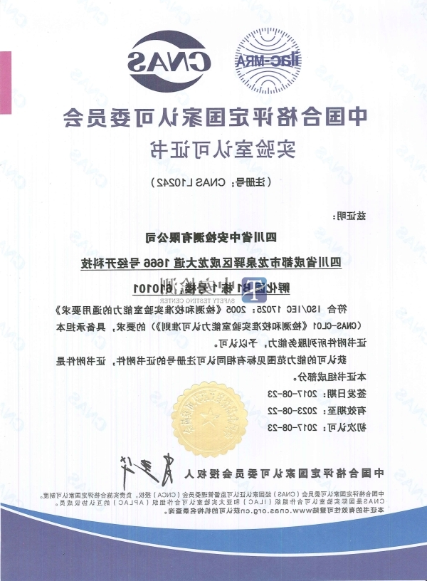 四川省beat365体育 检测有限公司作为西南地区最早一批成立的第三方食品检测认证公司,是目前西南地区少数几家已获得CNAS认可的检测机构之一。自2017年9月初次获得CNAS认可后,2018年11月再次通过了中国合格评定国家认可委员会扩项评审(注册编号:L10242),最迟现如今大公司已收获CNAS教育部认证的投资项目达898项。