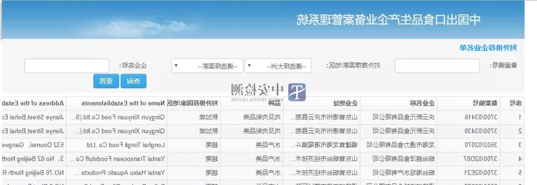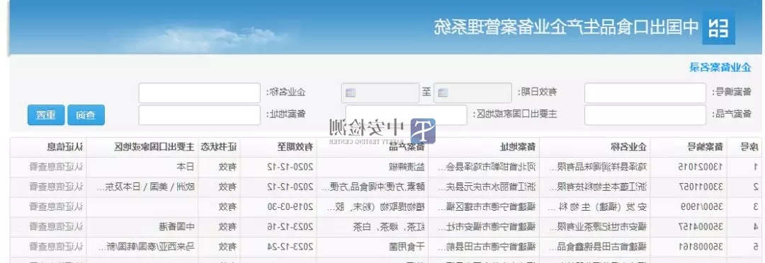 介绍:可查询企业名称、地址、品种、对外推荐国家/地区等信息