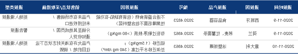 欧盟食品和饲料类快速预警系统(RASFF)通报(2020年第46周)