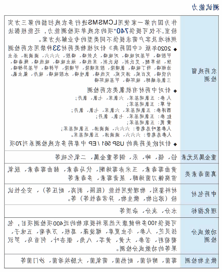 根据欧式药典EP 2.8.13中草药材多农残查测系统60+;