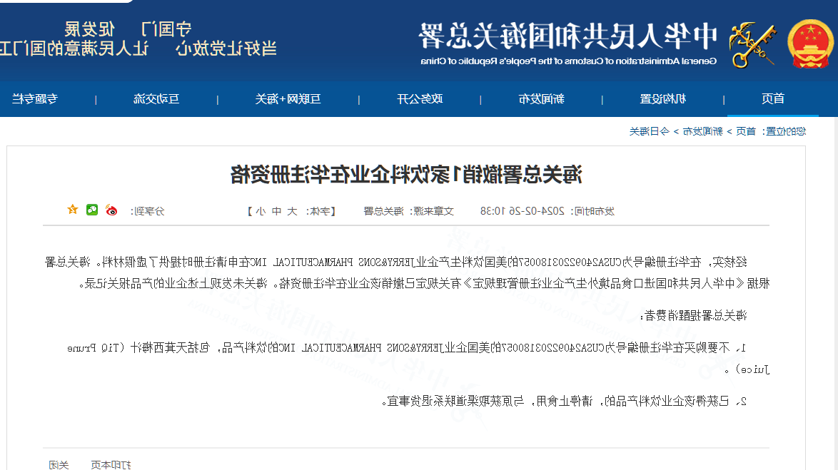 10月26日,中国国税总局官方发部公布称,经查实,在华备案网站会员号为CUSA24092203180057的俄罗斯咖啡冷饮出产公司中小客户公司JERRY&SONS PHARMACEUTICAL INC在申请书备案网站会员时保证了虚报物料,已撤消该公司中小客户公司在华备案网站会员资证,合称中国商检未出现 综上所述公司中小客户公司的类食品设备进出口报关数据。中国国税总局温馨提醒,的大学生消费群体不买到其咖啡冷饮类食品设备,例如天萁西梅汁(TiQ Prune Juice),已收集该公司中小客户公司咖啡冷饮类食品设备的,请为止食品,与原收集的渠道连系申请退款注意事项。